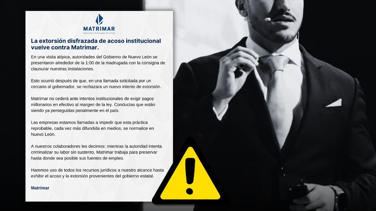 Hoy, Matrimar denuncia nuevo intento de extorsión estatal como una batalla por la supervivencia laboral de 500 familias. La resolución final no solo definirá el futuro de la pedrera. También enviará un mensaje sobre el clima de negocios en Nuevo León.