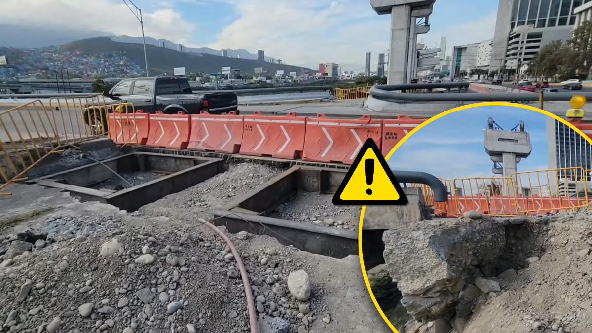 La gaza que conecta la Avenida Constitución con Pino Suárez rumbo al norte tampoco se salvó. De los cerca de 180 metros que la conforman, un tramo de aproximadamente 15 metros presenta hundimientos visibles.
